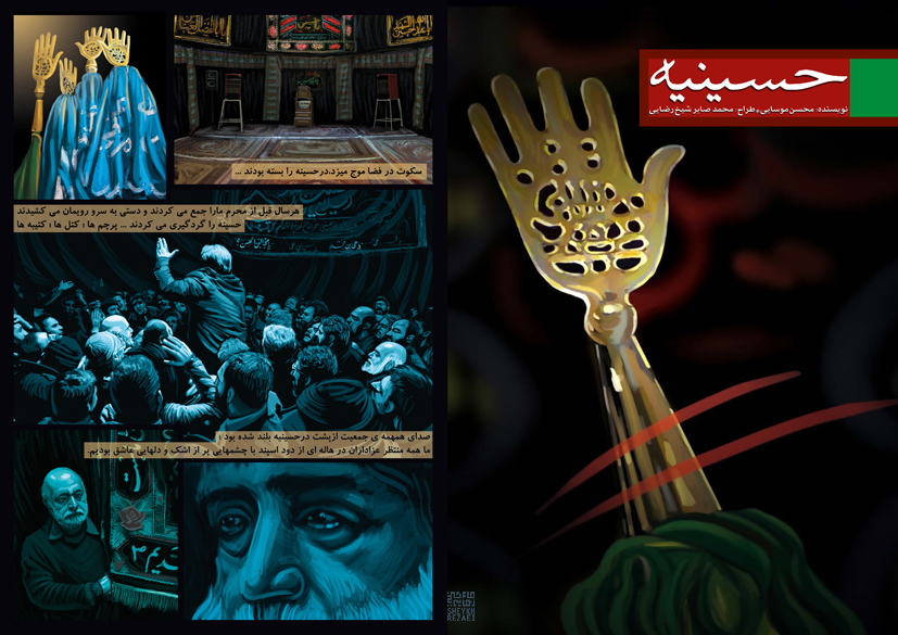 * کمیک استریپ "حسینیه" بر اساس داستانی از آقای "محسن موسایی"،به مناسبت ایام سوگواری محرم {طبق روال تولید آثار مشابه به صورت بسیار سریع و با زمان خیلی کم!} توسط بنده،در آذر ماه 1390 تصویرگری شد. این داستان از زبان ادوات و وسایل مختص مراسم،از جمله پرچم ها و علامت ها و آویزهای عزاداری سالار شهیدان روایت می شود.