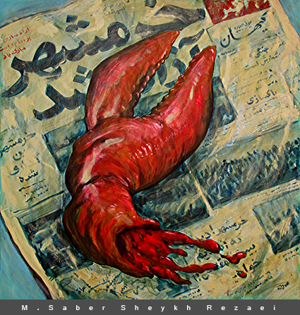 عنوان اثر:خرچنگ بعثی!/ نگاهی نمادین به موضوع شکست هیمنه دشمن در خرمشهر عزیز و قطع چنگک های خرچنگ متجاوزگر بعثی! بدست دلیران ایران زمین